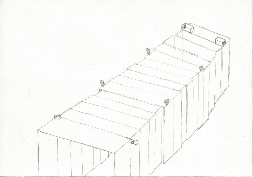 Within the Range of Transition Installation – plywood, light, 8 loudspeakers, 4 stereo sound tracks
